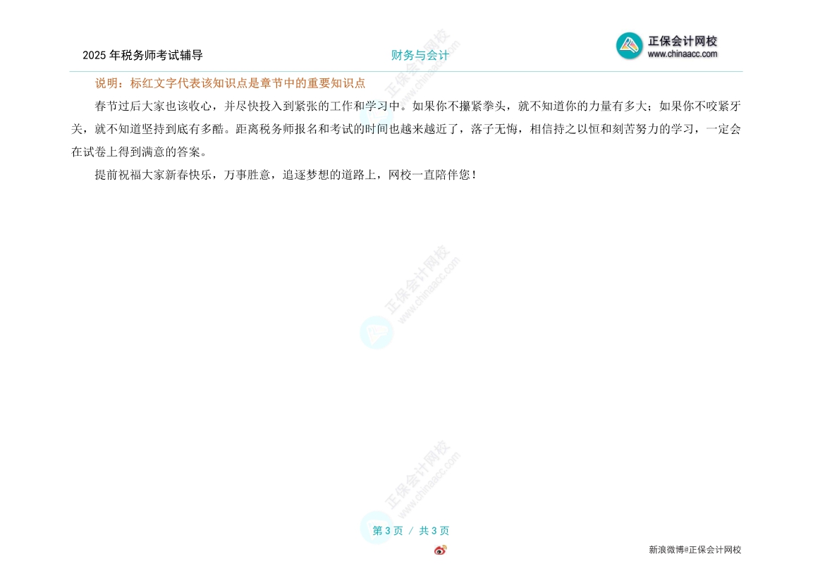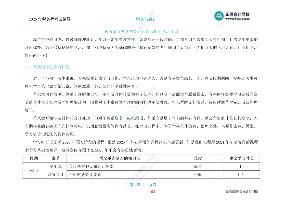 春节假期,走亲访友,也别忘了进行税务师课程学习哦!春节期间想学习?正保会计网校给您定好了8天的保温计划,下面是2025年税务师《财务与会计》春节8天保温计划,学起来!