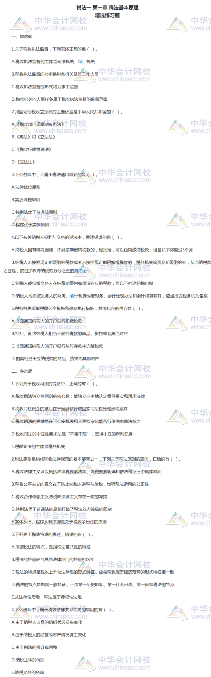 亲爱的考生,在做题吗?你还在挣扎要不要做税务师冲刺题吗?不要挣扎了,快去刷题吧?正保会计网校为广大考生整理了税务师各科的冲刺经典题,以下是《税法一》第一章的精选练习题,快来刷刷刷>>