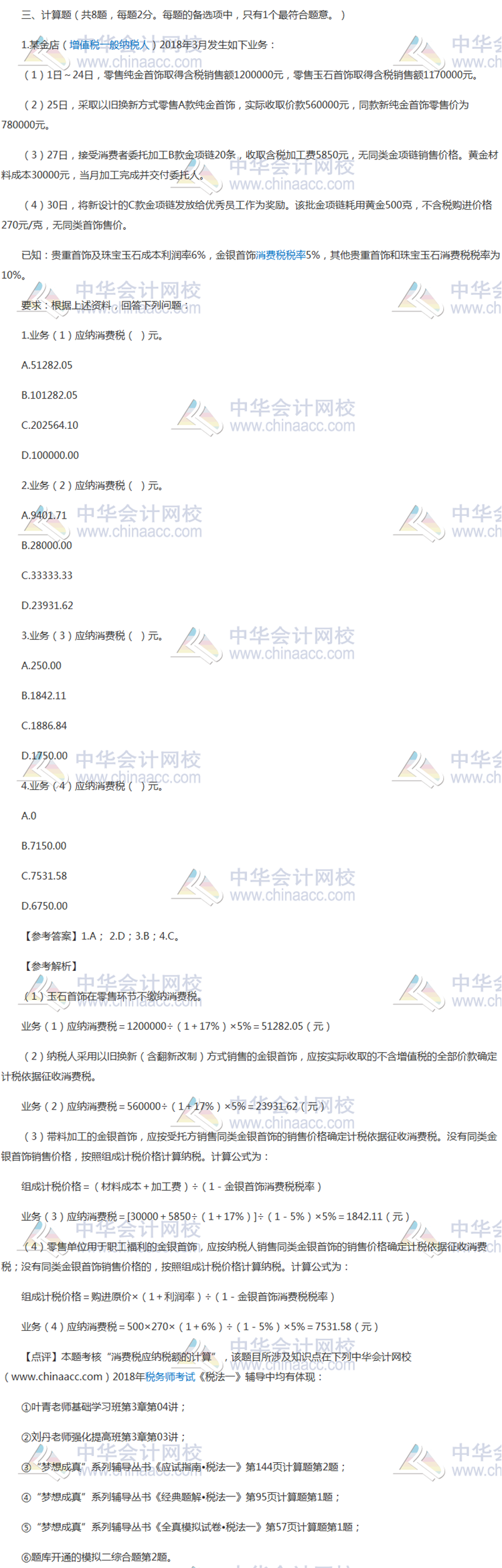 (1)1日~24日,零售纯金首饰取得含税销售额1200000元,零售玉石首饰取得含税销售额1170000元。