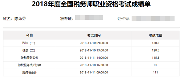正保会计网校2018年税务师考试学员陈泳芬以五科总分574.5的高分一次性通过税务师考试。
