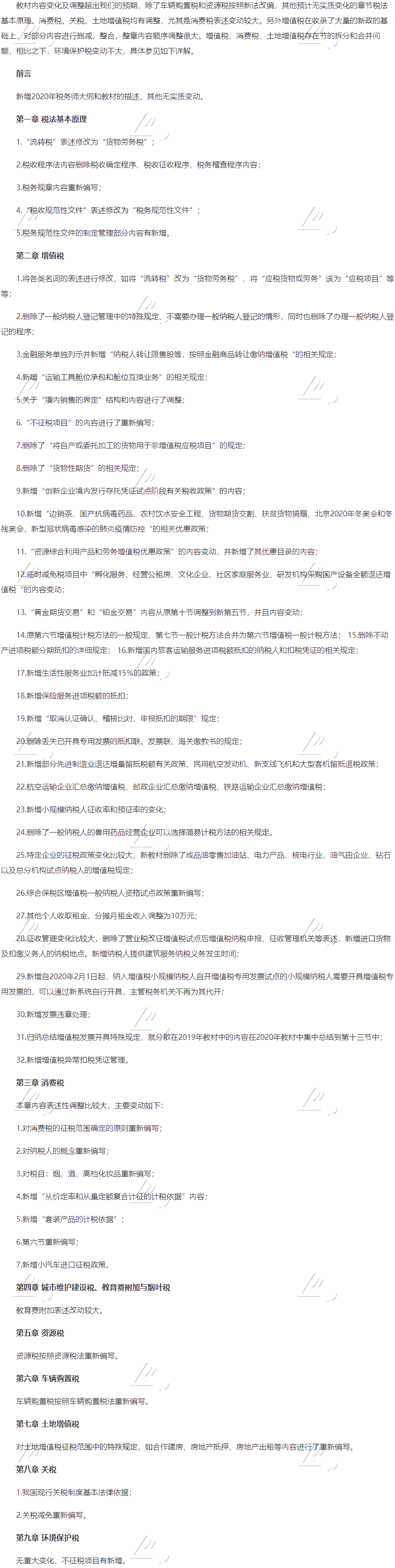 2020年的税务师税法(一)教材真真是千呼万唤始出来,教材的变化非常大,达到60%左右。昨天看的税务师税法(一)教材是税务师税法(一),今天再看,嗯,同学请重新来一遍!!