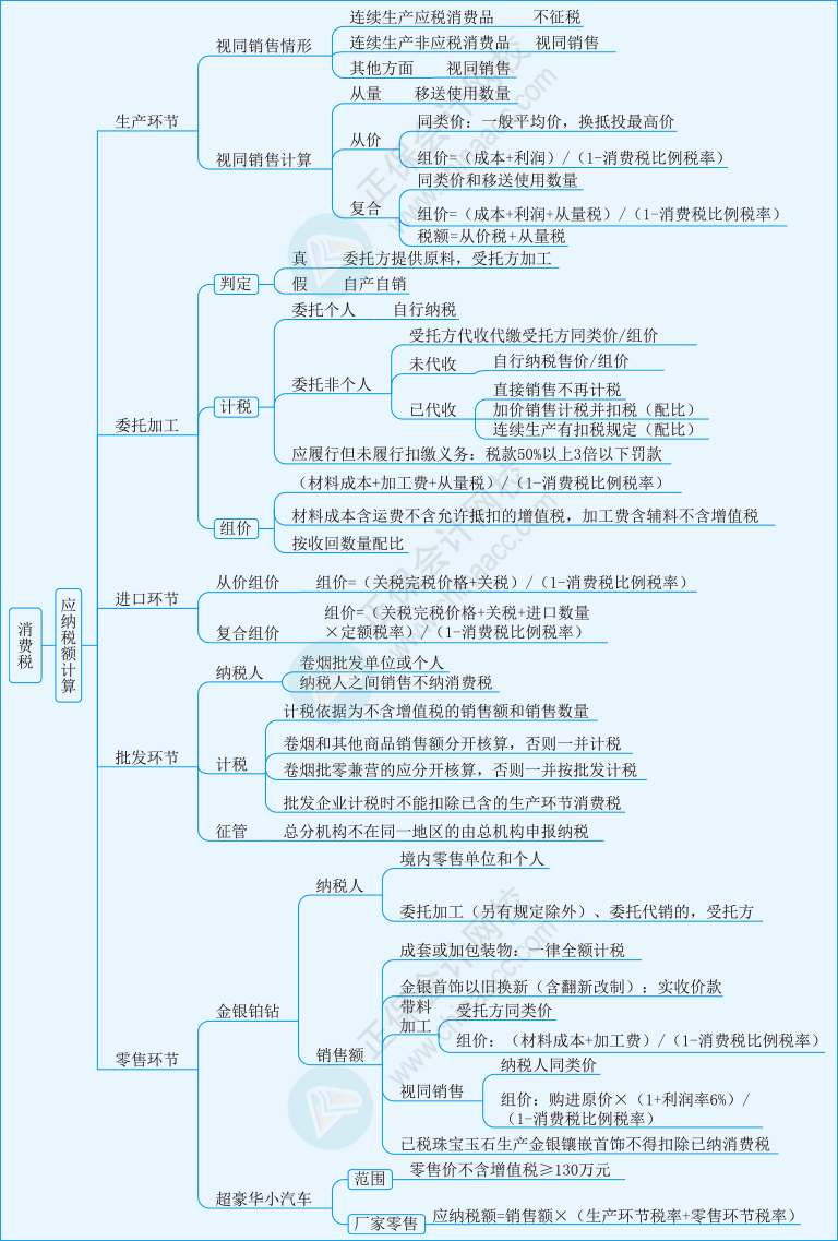 2022年税务师《税法一》思维导图第三章:消费税(二)