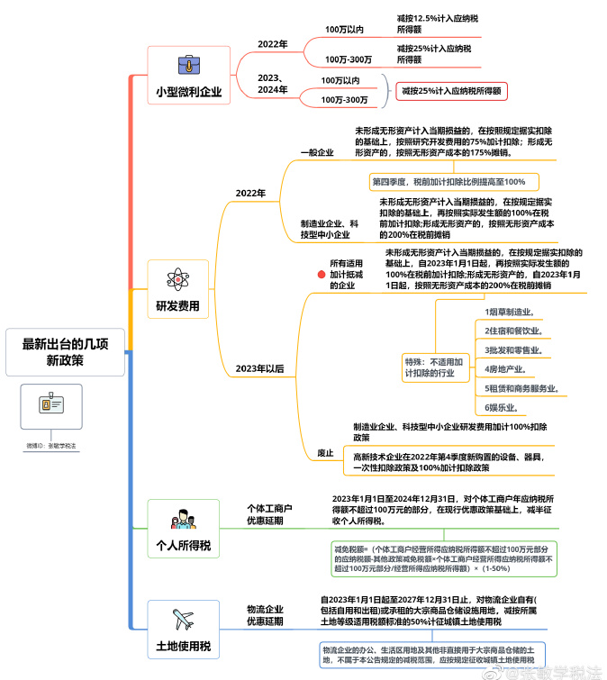 网校教务老师,为了更好的为学员服务也同步关注并学习税务新政。下面是张敏老师自己学习之余整理的新政策思维导图,有需要的同学可以点击查看大图另存为,或者也可以微博关注:张敏学税法,转发收藏。