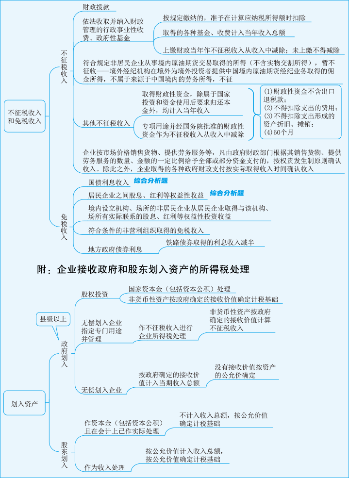 过河需要船和桥,备考2023年税务师也一样,需要借助辅助工具,思维导图是我们常用的,下面是2023年税务师《税法二》第一章思维导图:不征税收入和免税收入
