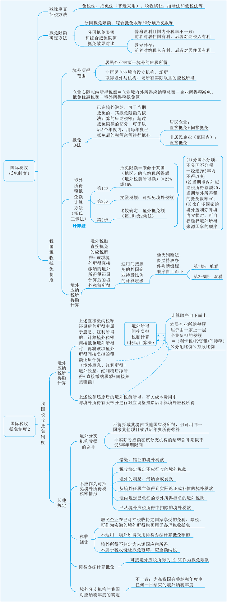 下面是2023年税务师《税法二》第三章思维导图:国税税收抵免制度