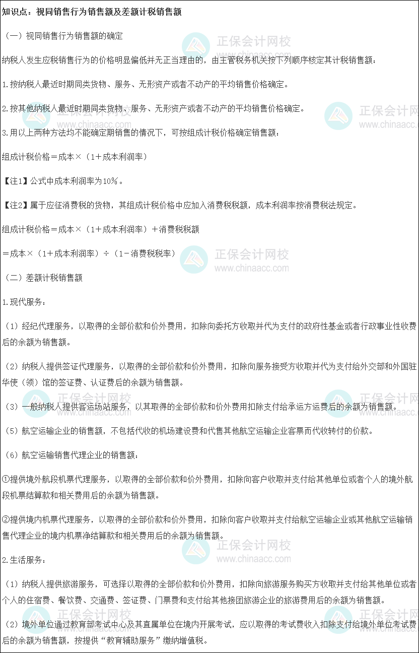 2024税务师《税法一》预习知识点:视同销售行为销售额及差额计税销售额