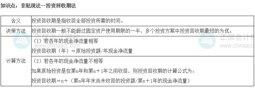 2024税务师《财务与会计》预习知识点:非贴现法一投资回收期法