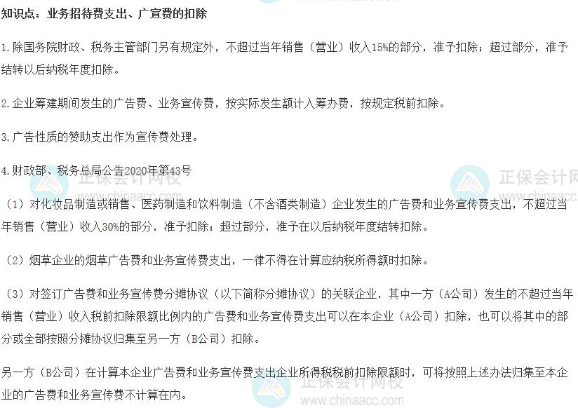 2024税务师《涉税服务实务》预习知识点:业务招待费支出、广宣费的扣除
