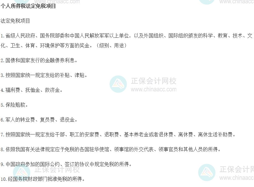 2024税务师《税法二》预习知识点:个人所得税法定免税项目