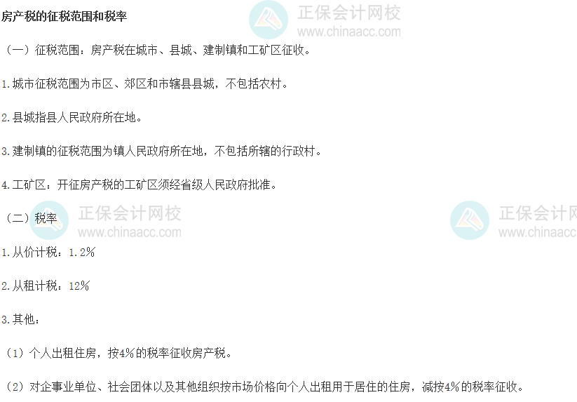 2024税务师《税法二》预习知识点:房产税的征税范围和税率