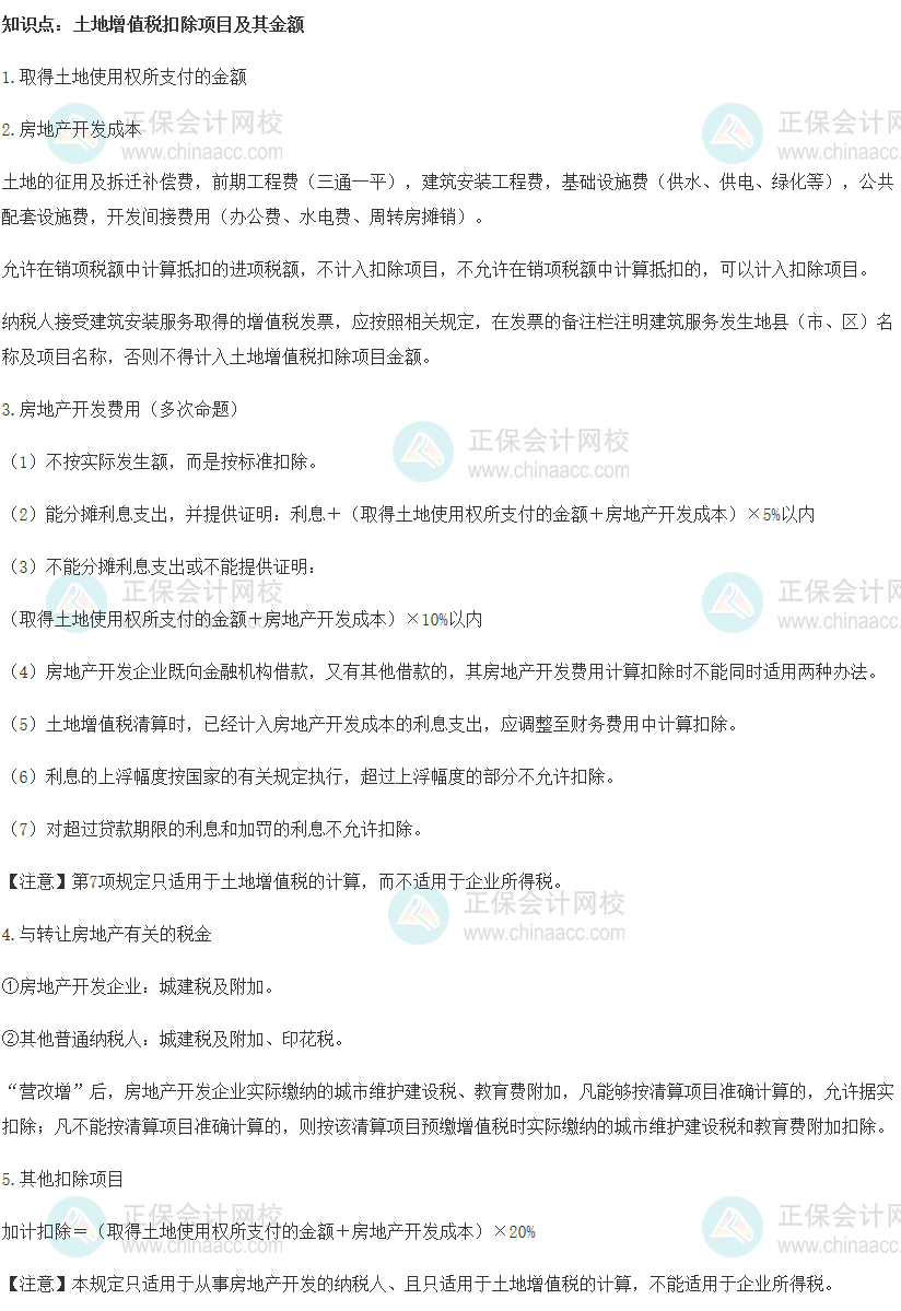 2024税务师《涉税服务实务》预习知识点:土地增值税扣除项目及其金额