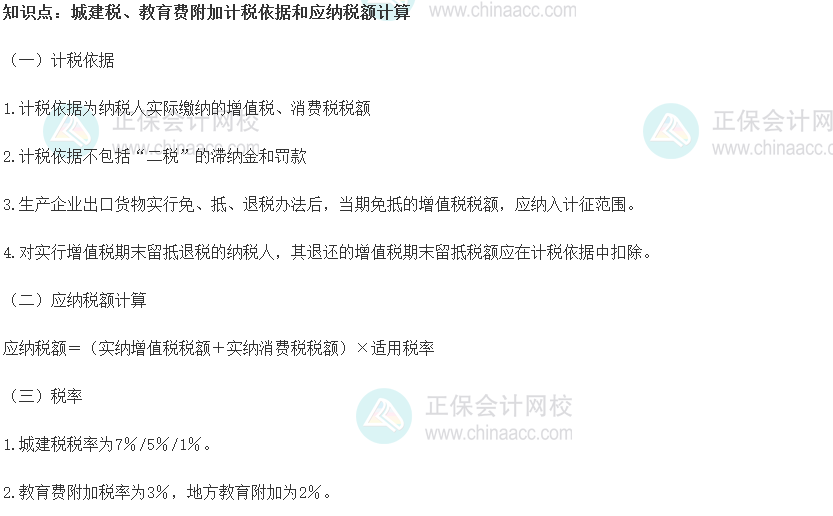 2024税务师《税法一》预习知识点:城建税、教育费附加计税依据和应纳税额计算