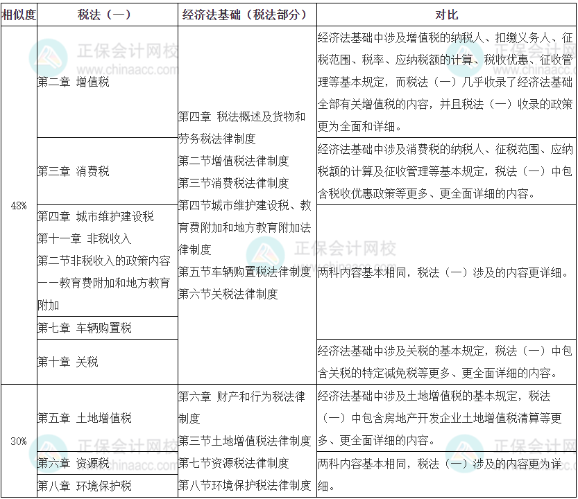 税务师《税法(一)》和初级《经济法基础》相似度
