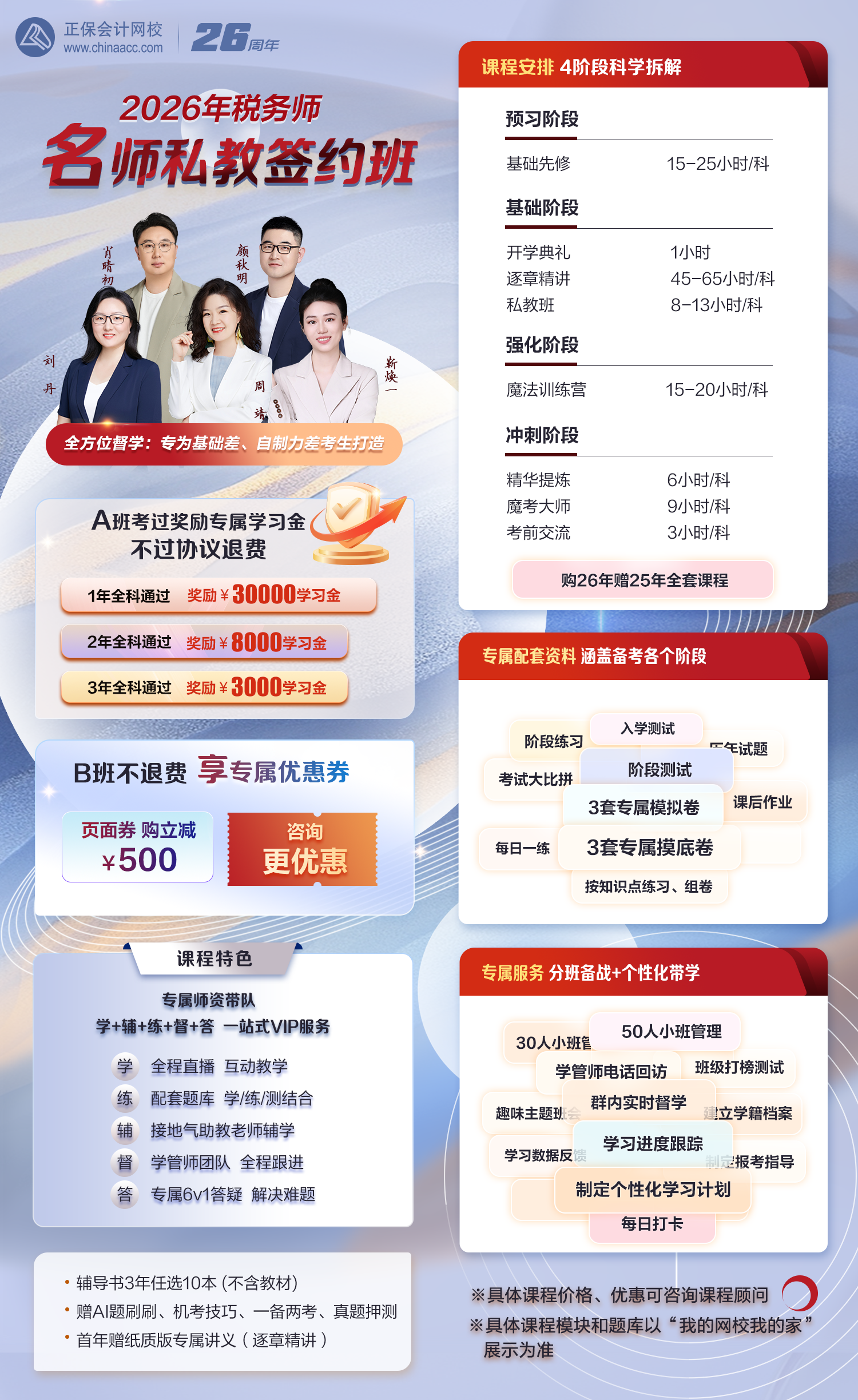 正保年货节!2026年税务师名师私教签约班享4重福利,优惠限时、小金马限量,手慢无!