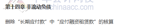 《财务与会计》教材第十四章关于非流动负债的知识点新变化,比如删除“长期应付款”中“应付金融资租赁款”的核算!希望我们每位学员在学习过程中都能理解和总结着去学习。