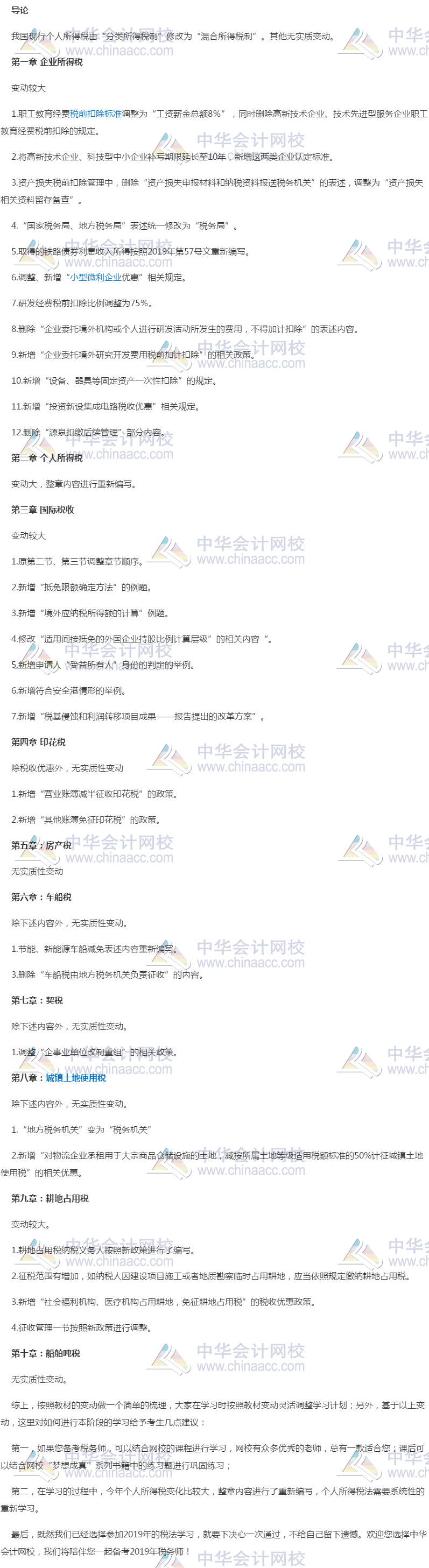 在税务师的五个考试科目里,税法一、税法二相对来说简单些,但是学习起来也不能松懈,特备是2019年税务师税法二教材变动高达35%!《税法二》教材第一章、第二章、第九章实质性变动较大,尤其个税整章内容重新编写,其他章节实质性变动不大。总体而言,变动比例大致在35%左右。快来跟着正保会计网校一起分析下《税法二》的教材变化情况以及如何学习吧。