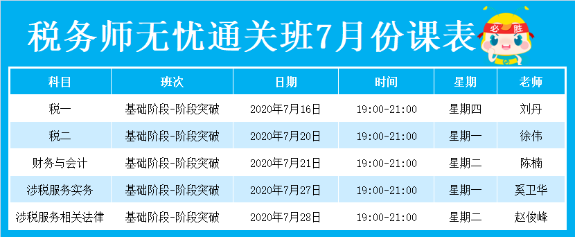 2020税务师无忧直达班7月份课表