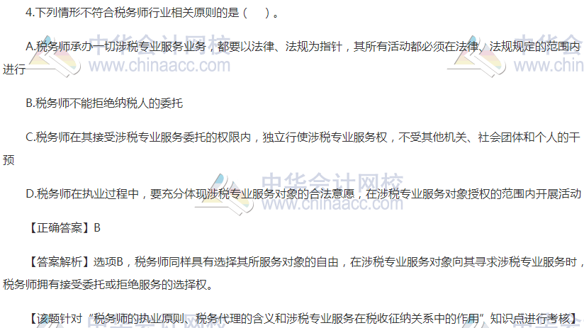 以上带来的这道2020税务师《涉税服务实务》科目练习题,是对税务师的执业原则、税务代理的含义和涉税专业服务在税收征纳关系中的作用知识点的考查,大家掌握好了么?