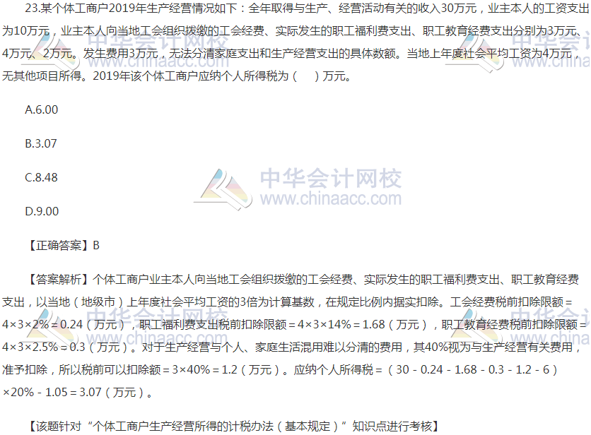 备战2020税务师考试,同学们平时不能光看书,还要多做题训练,从9月上旬开始,税务师考生也要增加习题训练量,同时要注意有针对性地练习,重点知识点的习题要多做。小编给大家更新2020年税务师《税法二》精选练习题,考查了个体工商户生产经营所得的计税办法知识点,赶快做一做。