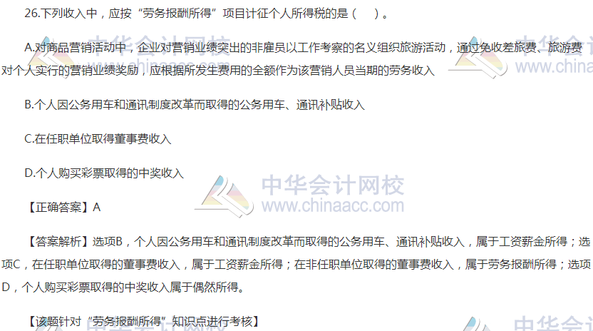 努力只能及格,拼命才能优秀!备考税务师一定要坚持!平时要注意多做题,检验自己哪里知识点没掌握好!进入到9月份开始,其实税务师考生就应该增加习题训练量了,正保会计网校小编也会在税务师考试前经常更新一些精选练习题给大家练习!以下为2020年税务师《税法二》精选练习题:劳务报酬所得,考查知识点,赶快练习。