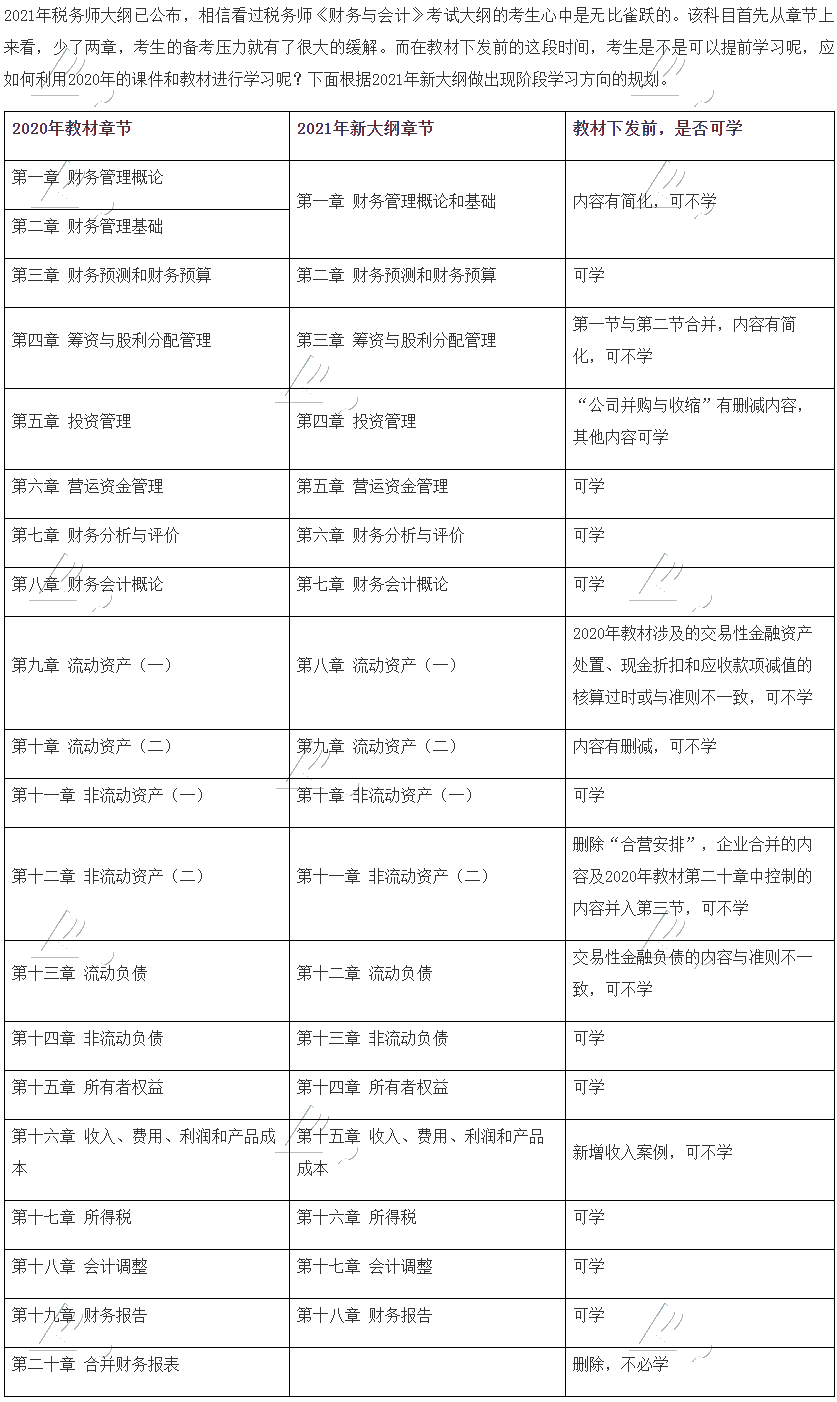 2021年税务师考试大纲公布,但2021年税务师新教材预计5月下旬公开发行,未收到新教材时,很多人备考没有方向。正保会计网校教研团队整理好2021税务师《财务与会计》教材发行前可提前学习的干货,教大家如何利用2020年课程和教材高效学习!