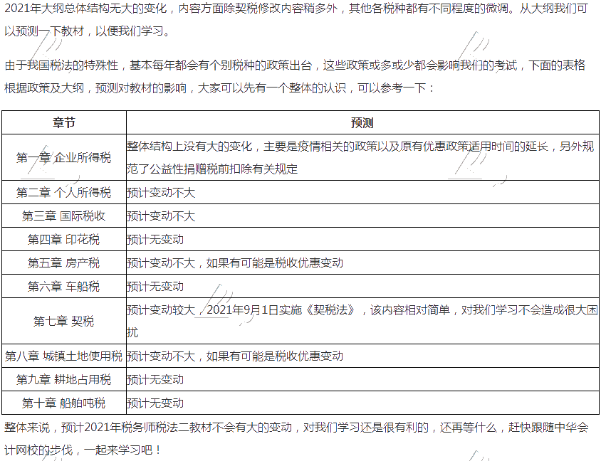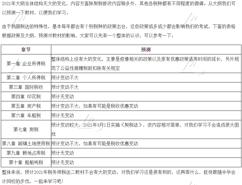 2021年税务师税法二教材变化预计情况