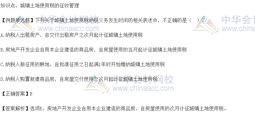 正保会计网校税务师教研团队为大家精心整理了2021税务师各科目各章节精选习题,以下是2021税务师《税法二》第八章城镇土地使用税精选练习题:城镇土地使用税的征收管理,快看看。