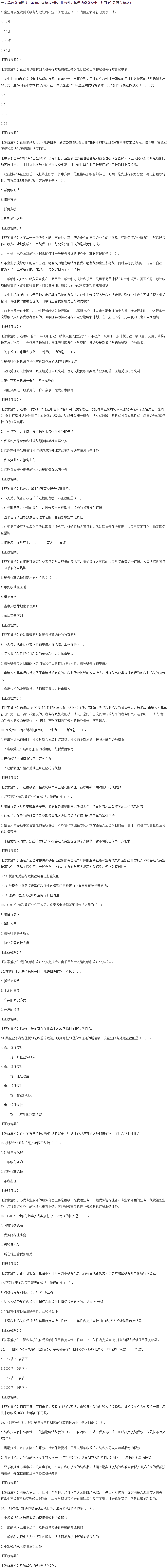延期考试地区考生,要每天保持学习状态。正保会计网校教研老师为大家整理了2021税务师各科目考前冲刺必刷卷,以下是2021税务师《涉税服务实务》考前冲刺必刷卷单选题(卷一),好好练习吧!