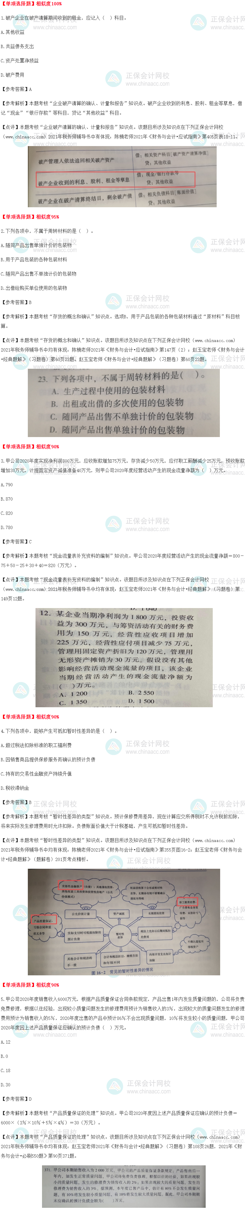 围观2021年税务师考试情况(第二批次),网校考得好的学员都用了《应试指南》、《经典题解》辅导书。《应试指南》和《经典题解》辅导书不少知识点及题目与税务师试题相似,以下带来2021税务师《财务与会计》辅导书知识点覆盖率分析-单选题,快看看。