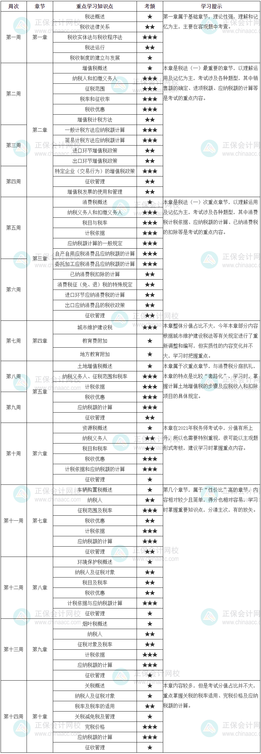 2022年税务师《税法一》学习计划表