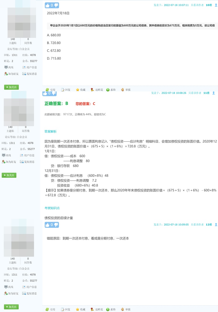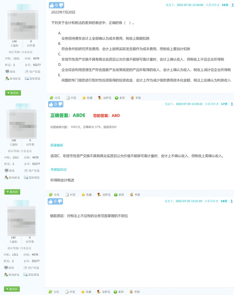 正保会计网校老师将上周(2022年07月17日到2022年07月24日)“每日一练”题目中大家正确率较低的题目进行了点评: