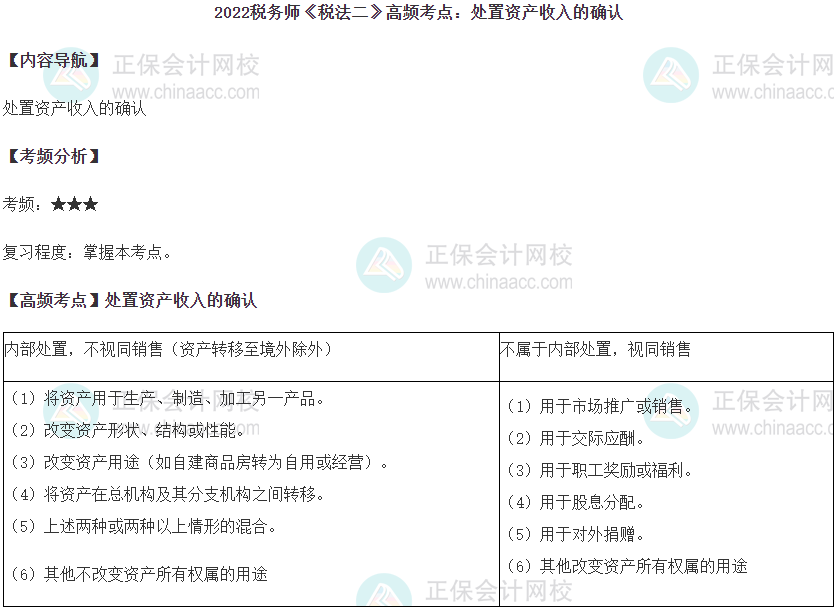 税务师税法二知识点相对容易理解,但知识点多,一定要将重点知识点着重复习,理解透彻!正保会计网校整理了2022税务师《税法二》各章高频考点,先看看2022税务师《税法二》第一章高频考点:处置资产收入的确认。