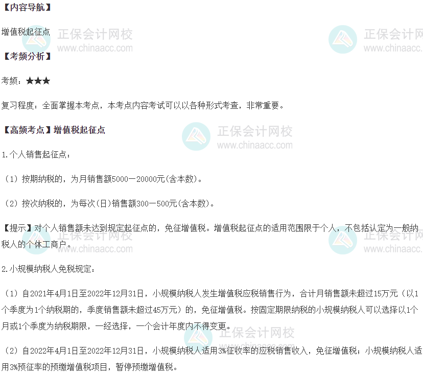 税务师税法一知识点相对好理解,但知识点多,记忆任务重,我们就要有重点。正保会计网校整理了2022年税务师《税法一》高频考点,下面是2022年税务师《税法一》第二章高频考点:增值税起征点和小规模纳税人免税规定,要好好掌握呀!