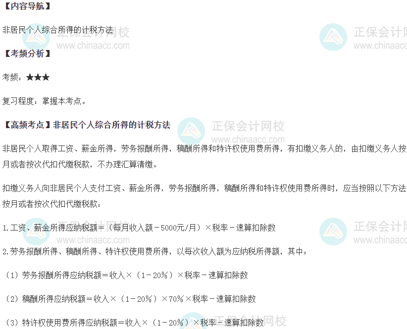 为帮考生全面把握重点,高效学习,正保会计网校整理了2022年税务师考试《税法二》高频考点,下面是2022年税务师《税法二》高频考点第二章:非居民个人综合所得的计税方法,好好看看哦!