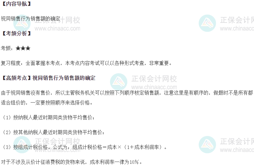 税务师考试近年来经常考到得知识点,要重点复习哦!正保会计网校给大家整理了2022年税务师《税法一》各章高频考点,下面是2022税务师《税法一》第二章增值税高频考点:视同销售行为销售额的确定,好好把握哦!