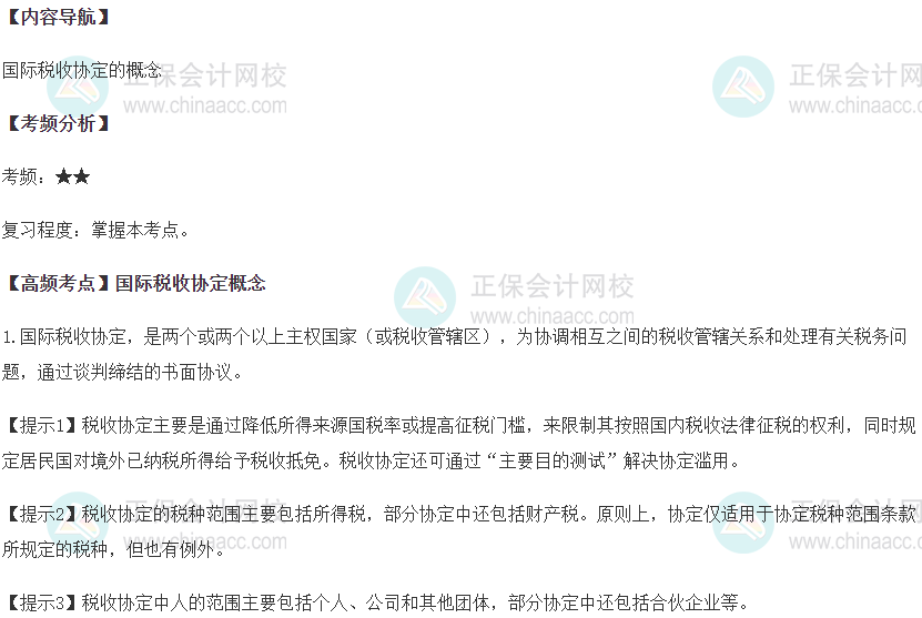 税务师《税法二》知识点繁琐,需要记忆的内容多,找对重点很重要。下面带来2022年税务师《税法二》第三章国际税收高频考点:国际税收协定概念,快看看你掌握了没。