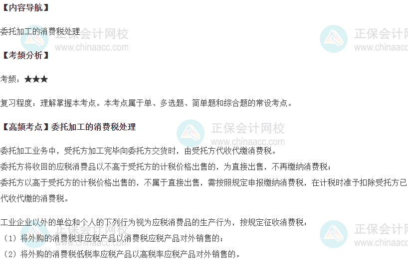 正保会计网校整理了2022年税务师考试高频考点,下面更新2022年税务师《涉税服务实务》第三章涉税专业服务程序与方法高频考点:委托加工的消费税处理,快看看。