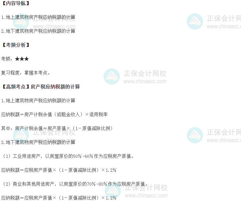 税务师考试有一些考频考点,需要大家梳理掌握。正保会计网校整理好2022年税务师各科高频考点,下面更新2022年税务师《税法二》第五章房产税高频考点:房产税应纳税额的计算,好好掌握哦!