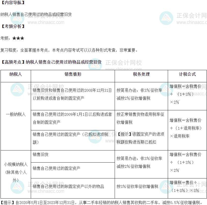 税务师考试哪些是重点呢?请把高频考点好好看看!下面更新2022税务师《税法一》第二章增值税高频考点:纳税人销售自己使用过的物品或经营旧货。