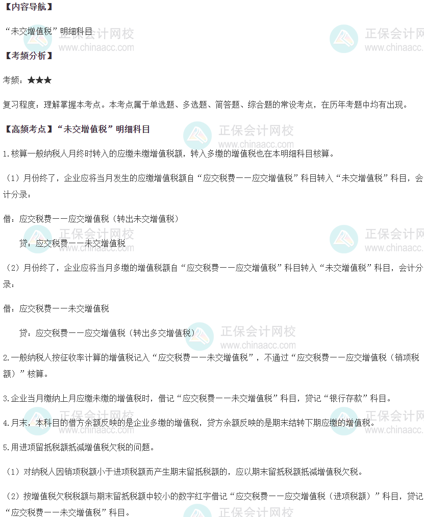 备考税务师,将课本每一页内容复习的面面俱到不太可能,但抓考点、复习重点,是大家要做的。正保会计网校整理了2022税务师《涉税服务实务》科目高频考点,下面更新2022税务师《涉税服务实务》第四章涉税会计核算高频考点:“未交增值税”明细科目,快看看。