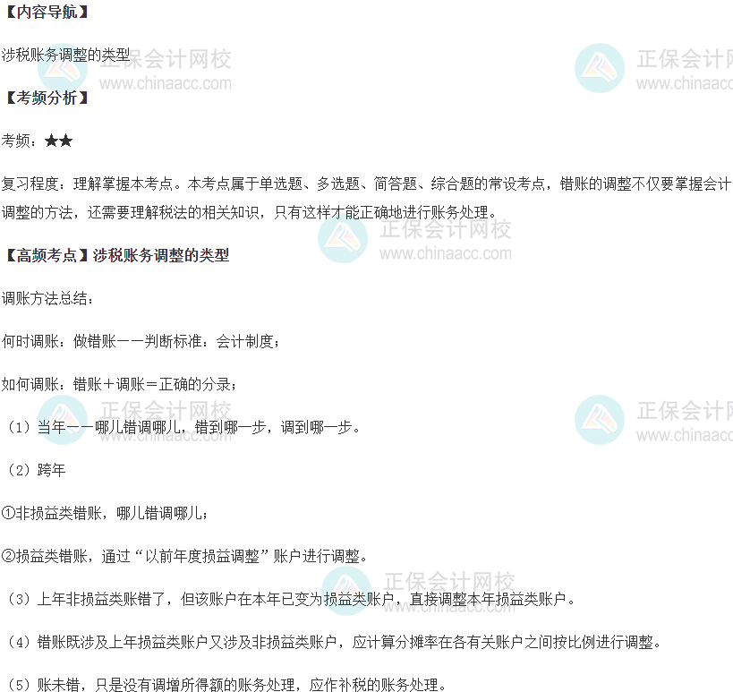 2022年税务师考试时间临近,同学们这段时间,可以有意识地多做题巩固,同时总结知识点。网校给大家总结了2022税务师考试高频考点,下面是2022税务师《涉税服务实务》第四章涉税会计核算高频考点:涉税账务调整的类型,要熟练掌握呀!