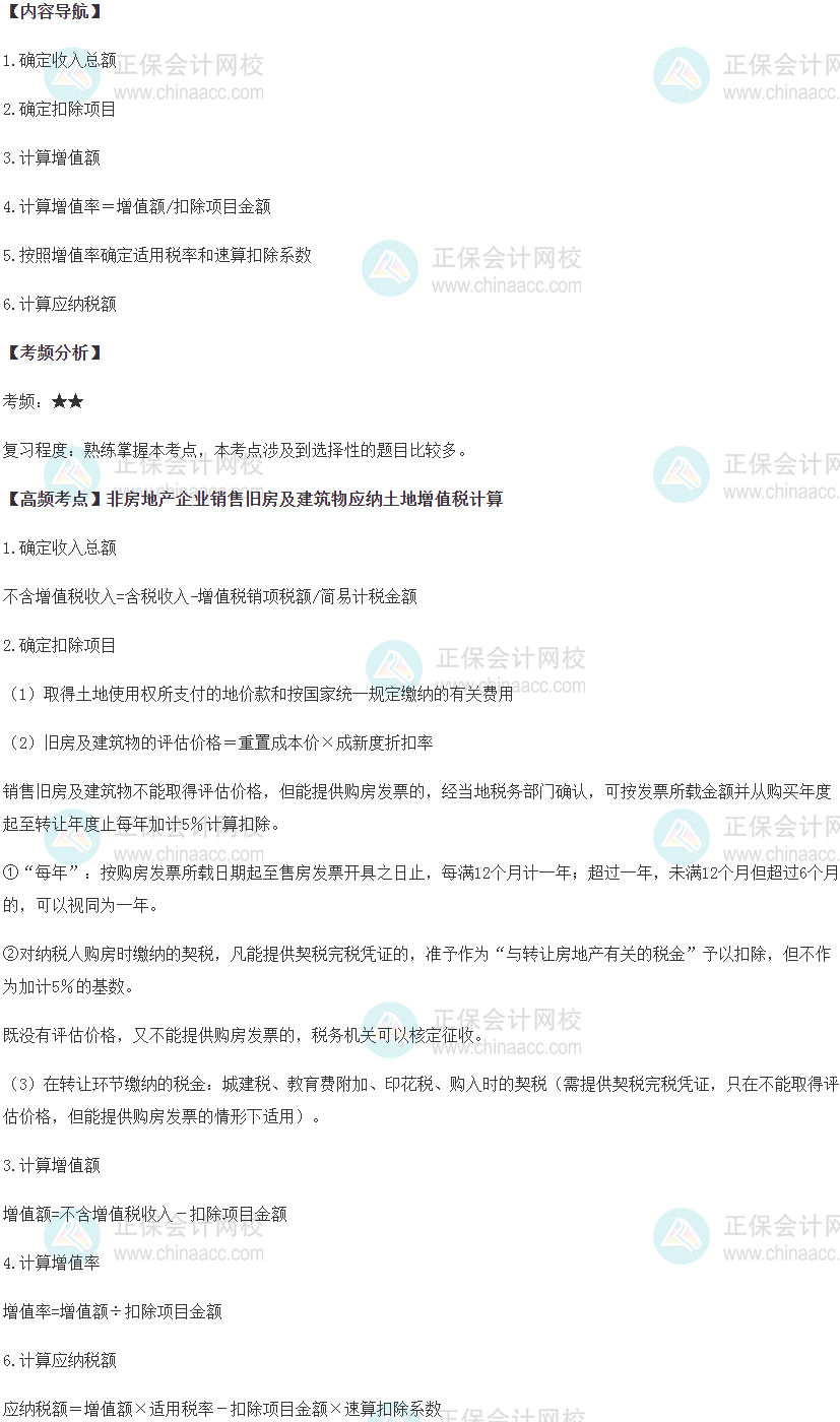 税务师考试出现频率比较高的知识点,要重点掌握。网校精心整理的税务师各科考试高频考点,要好好看看!下面更新2022年税务师《税法一》第五章土地增值税高频考点:非房地产企业销售旧房及建筑物应纳土地增值税计算。