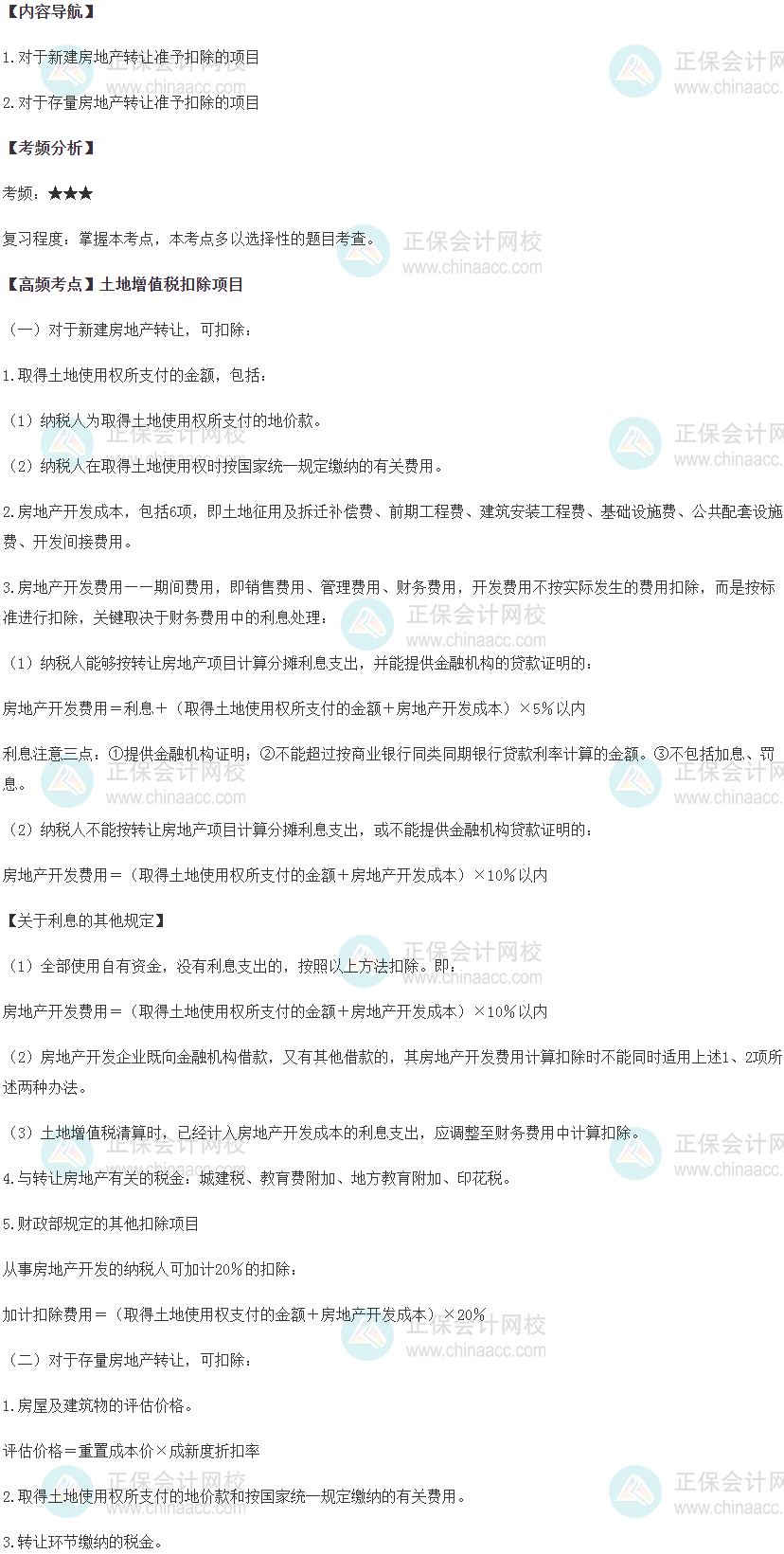 税务师考试前这段时间复习很关键,只有全面掌握重点,基础巩固扎实,税务师考试才能顺顺利利。网校给大家整理的税务师各科目考试高频考点,考前随时看看!下面更新2022年税务师《税法一》第五章土地增值税高频考点:土地增值税扣除项目。