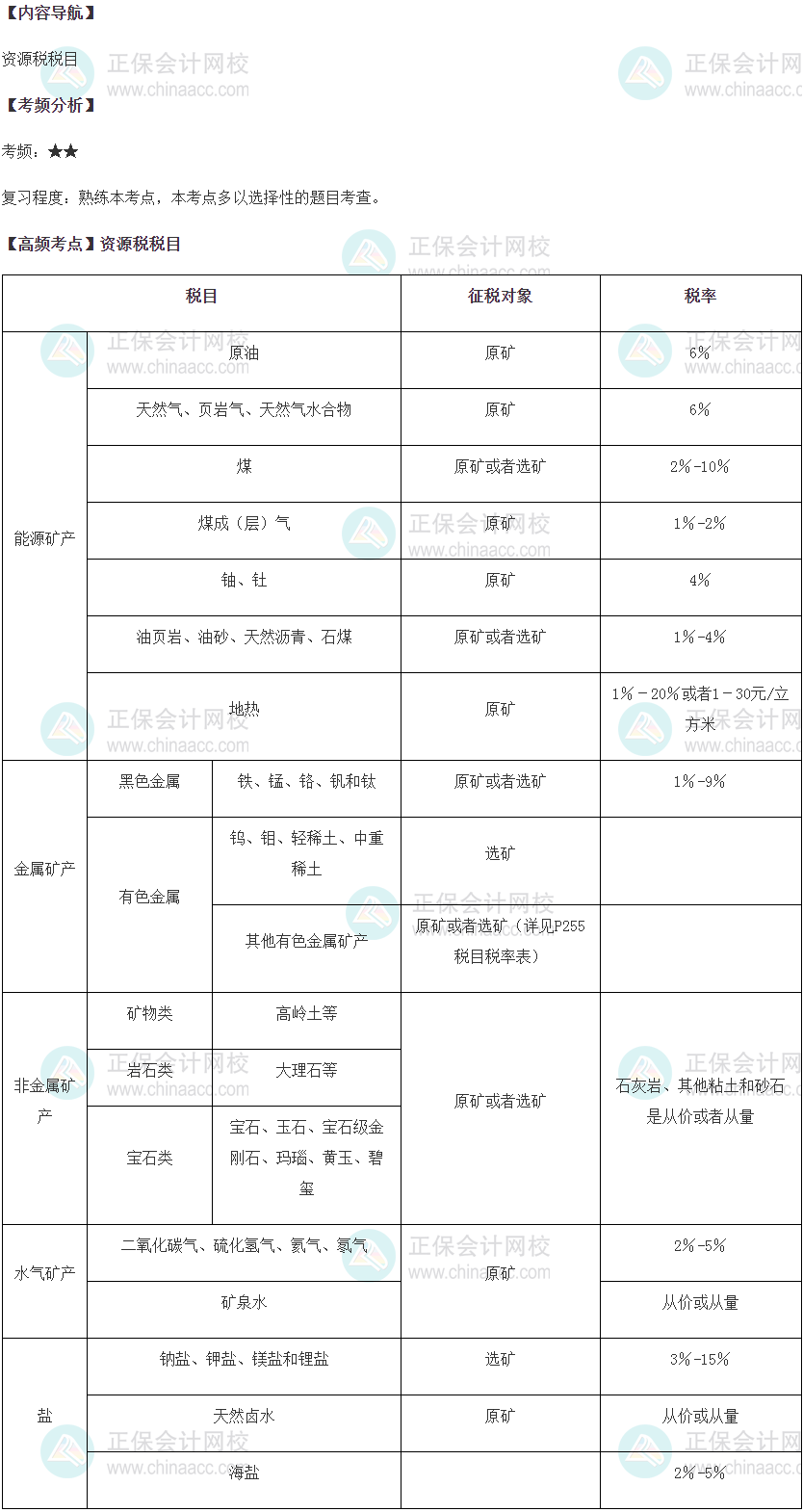 2022税务师考试复习的冲刺阶段,同学们的基础知识掌握得如何?一定要多做题、总结,重点知识要掌握好!下面更新的是2022税务师《税法一》第六章资源税高频考点:资源税税目,这个知识点你会了吗?