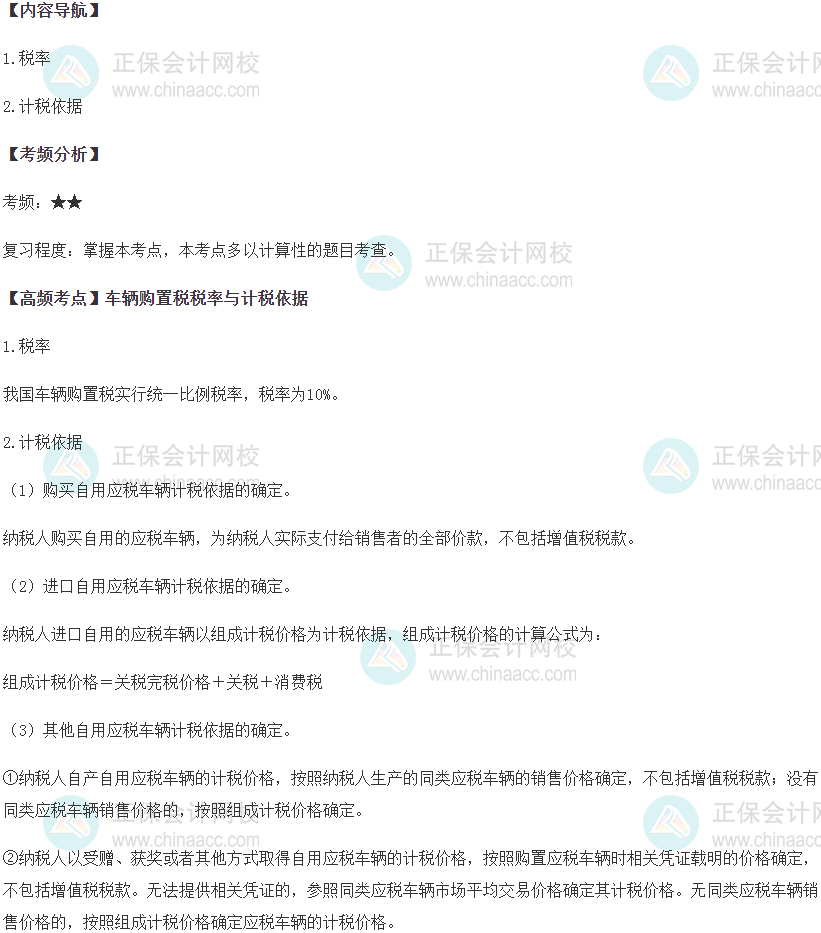 2022年税务师考试进入冲刺阶段,不知道基础知识点掌握得怎么样呢?重点知识点都熟记于心了没?正小保带来了2022年税务师《税法一》近几年考试高频考点,下面是2022年税务师《税法一》第七章车辆购置税高频考点:车辆购置税税率与计税依据,快看看自己掌握了没!