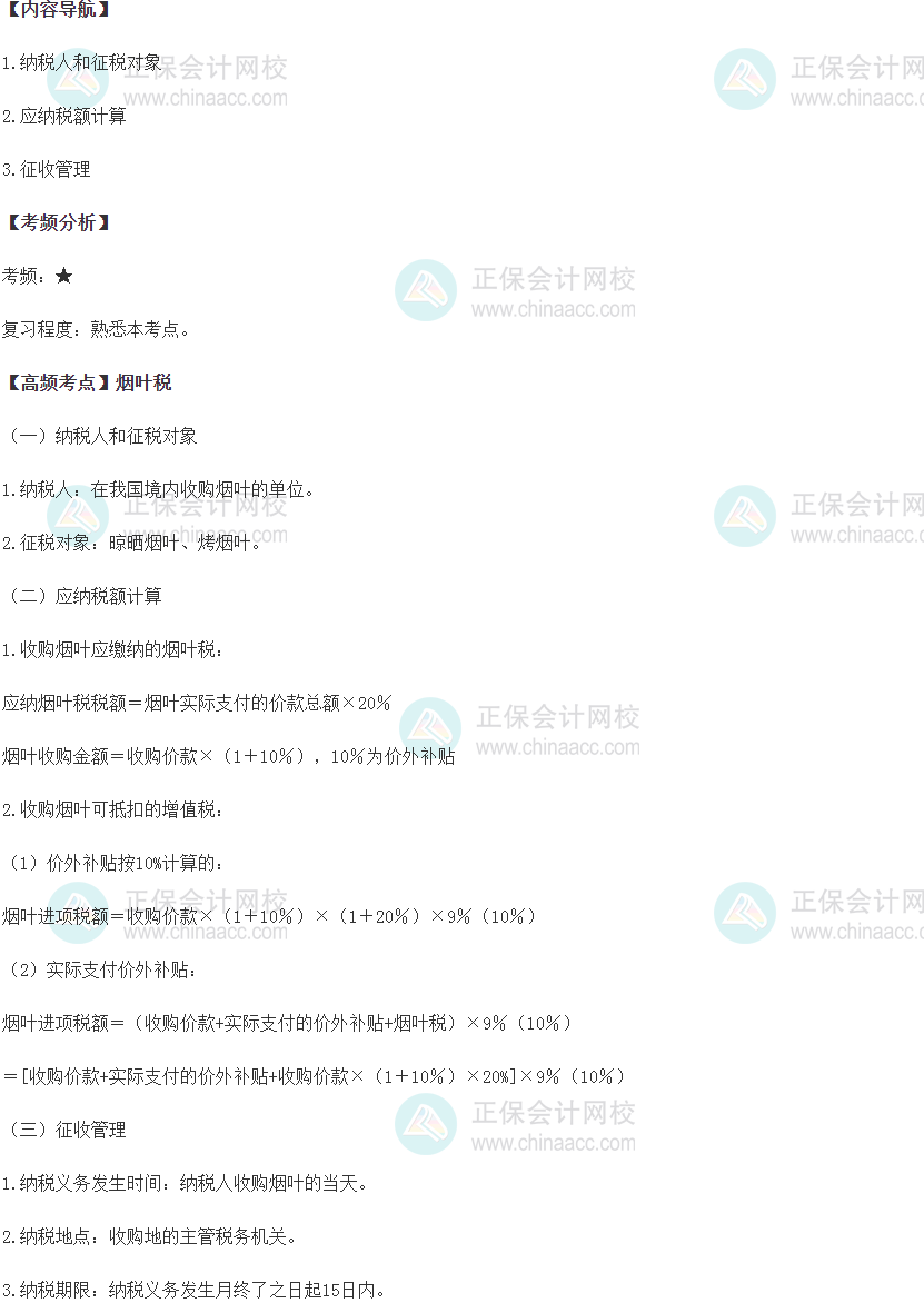 税务师税法二知识点多,近年来考试考得细,但整体难度并没有部分考生想象的那么难,扎实基础,把握重点,拿下考试并不难!比如,近年考试高频考点,一定要熟练掌握。下面是2022年税务师《税法一》第九章烟叶税高频考点:烟叶税,关于烟叶税的纳税人和征税对象、烟叶税应纳税额计算、烟叶税征收管理知识点,要熟练把握!
