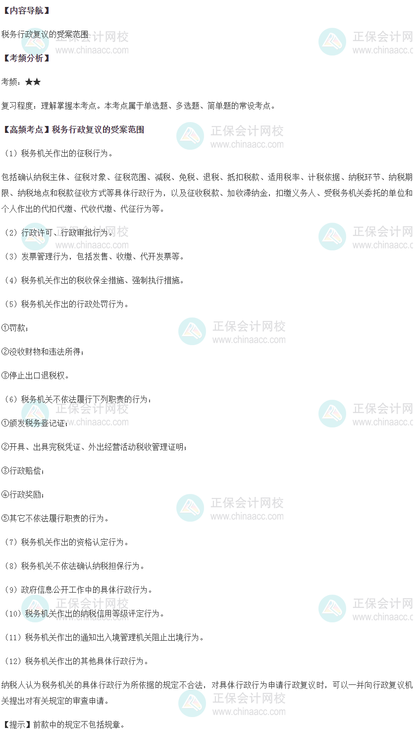 随着税务师考试前复习时间越来越少,咱们考生要注意主抓重点,近年的税务师考试高频考点,一定要多复习,熟练掌握!下面更新的是2022年税务师《涉税服务实务》第九章其他涉税专业服务高频考点:税务行政复议的受案范围,快看看。