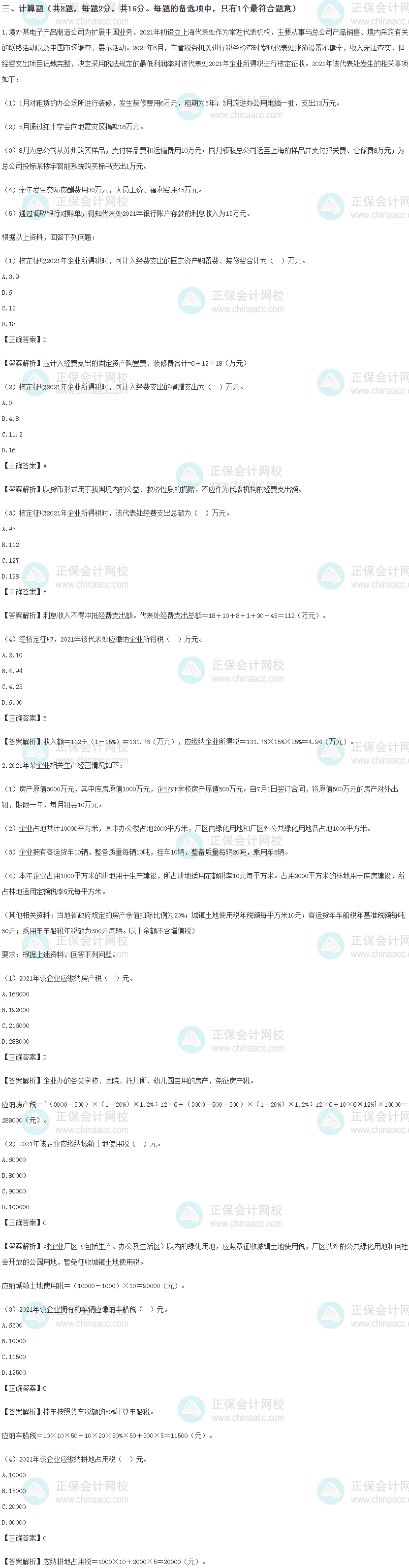 2022税务师考试《税法二》考前冲刺模拟试卷-计算题