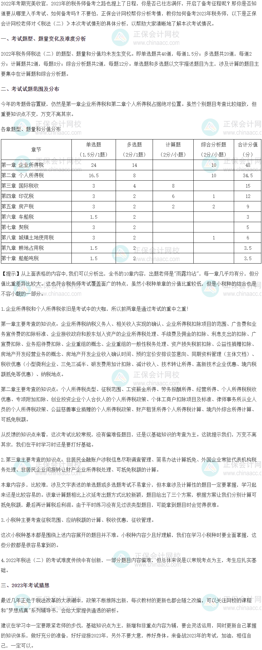 2022年税务师第二次延考《税法二》考情分析及2023年考情猜想