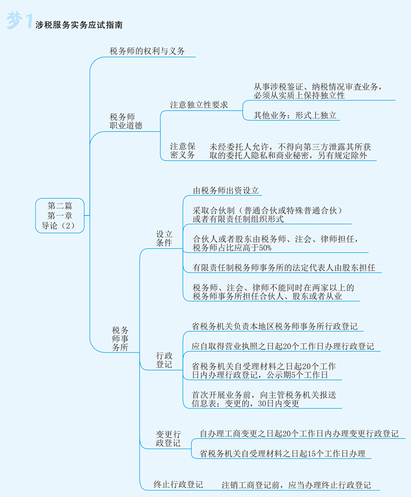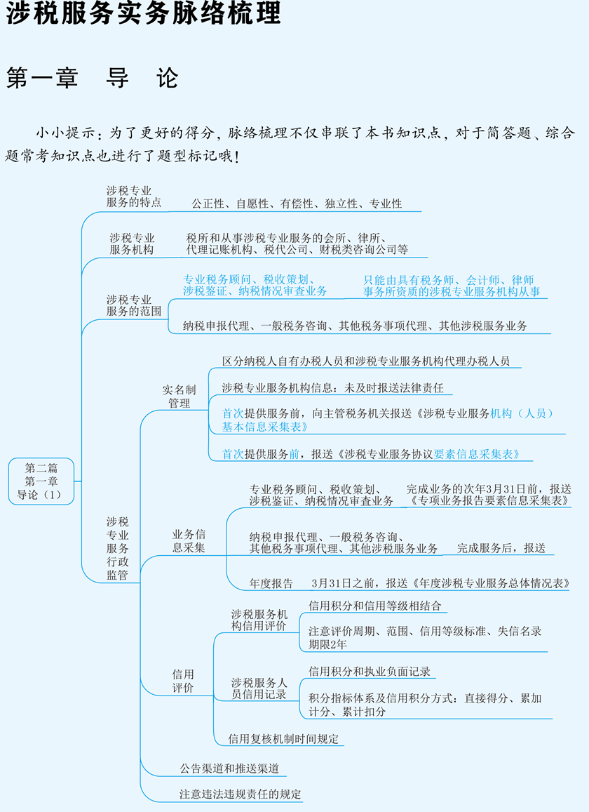 以上思维导图出自网校2023税务师《涉税服务实务》应试指南辅导书,建议大家都准备上这本书。应试指南总结教材知识,有详细的知识点解析,配有章节练习题,结合网校课程,每学完一章节,做一做应试指南上的章节练习题,检验所学,加深对知识点的印象。